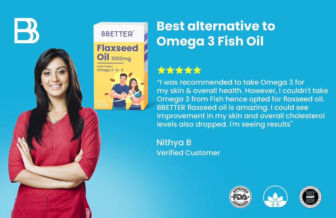 BBETTER Flaxseed Oil is rich in Omega 3-6-9 and is highly beneficial to manage cholesterol and blood pressure levels. For all the vegetarians out there who were instructed to increase their Omega 3 intake but couldn't do so with marine extracted supplements, Flaxseed is a great alternative and not to mention how equally beneficial it is.