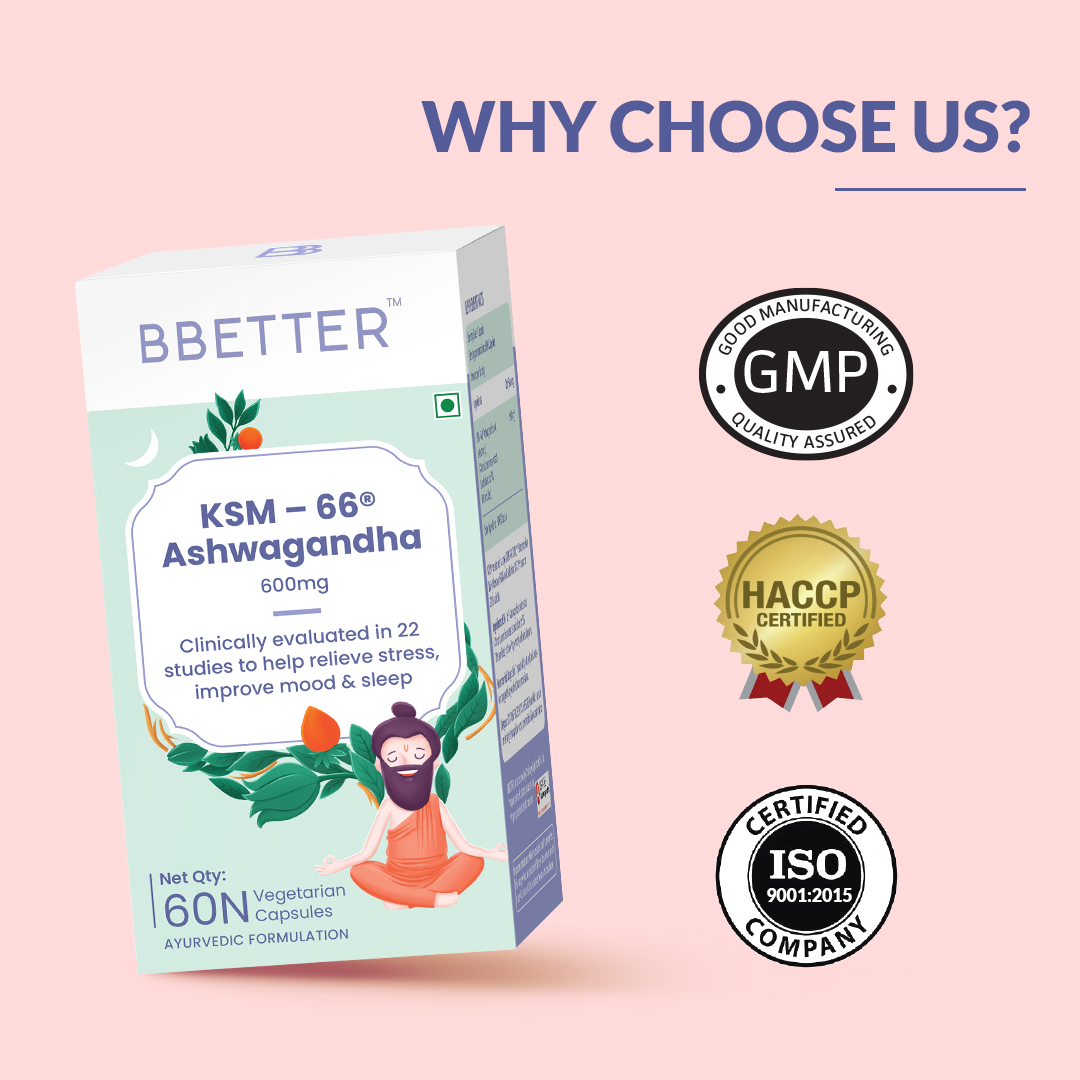 BBETTER Ashwagandha is formulated with KSM-66 Ashwagandha that is considered to be the best in the world as its roots are dried in controlled conditions to ensure maximum potency.
